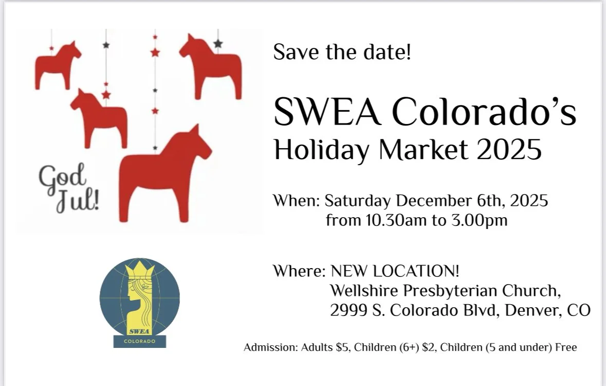 The Swedish Holiday Market on December 6 in Denver (wonderful cultural event - new location. 2999 S. Colorado Blvd, Denver)